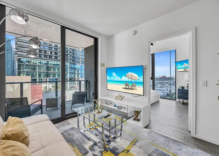 Waterline Corner Vies 2Br 2Ba Suites Miami spacieux est situé dans le voisinage de "Centre de Miami" à Miami, à 5 minutes à pied de la Église du Gesù de Miami. Vous pourrez vous détendre dans le jacuzzi, ou visiter le Marché de Bayside, qui se trouve à 350 mètres.